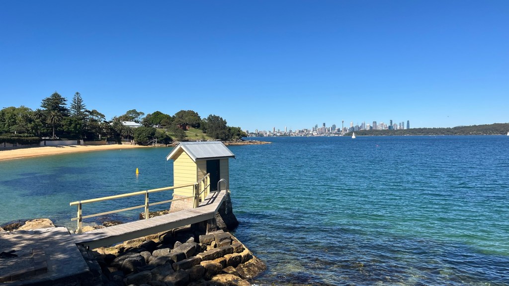 After fuelling with a flat white and huge banana bread I set off early to beat the heat: today’s forecast is 30 degrees, and last time I tried to walk in that weather I had to bail out. North Sydney is calm in the early morning, the sun sparkling and shimmering on the Harbour water and slowly illuminating the CBD buildings.