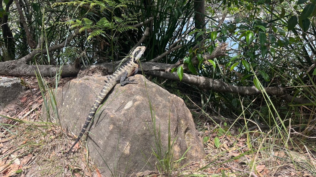 The trail seems wilder on this side of the Bridge. Bush turkeys rustle through underbrush in the middle of suburbia, and jacarandas arch overhead creating a perfect purple tunnel. As I approach Taronga Zoo the pavement gives way to dirt track and genuine bushland. A kookaburra perches on a signpost, and dozens of water dragons sun themselves on rocks: some scurry away as I approach, others are less concerned and I have to slow to step around them carefully. Tiny coves and beaches emerge through the trees, perfect for swimming if, unlike me, you’ve remembered to pack your swimmers.