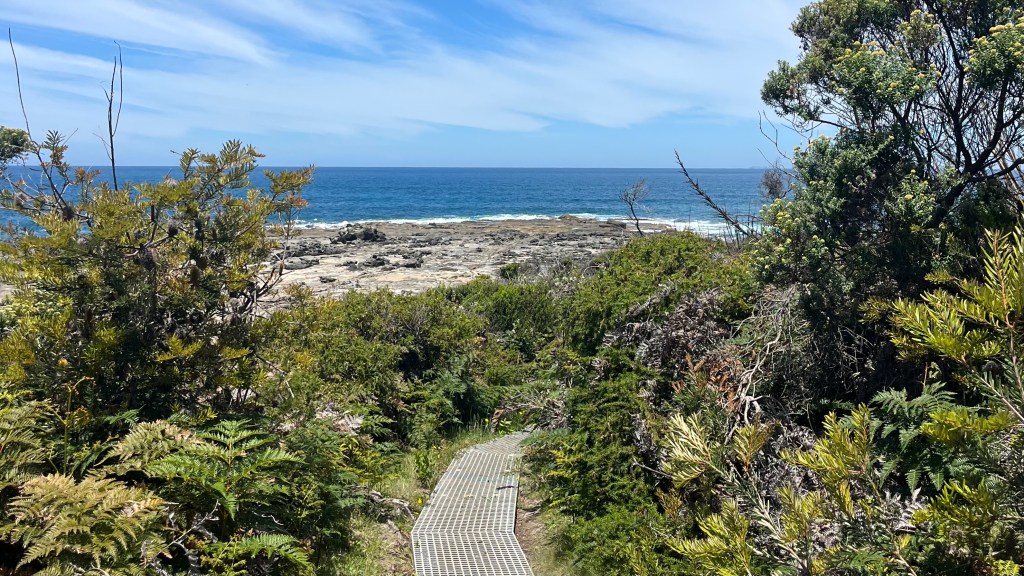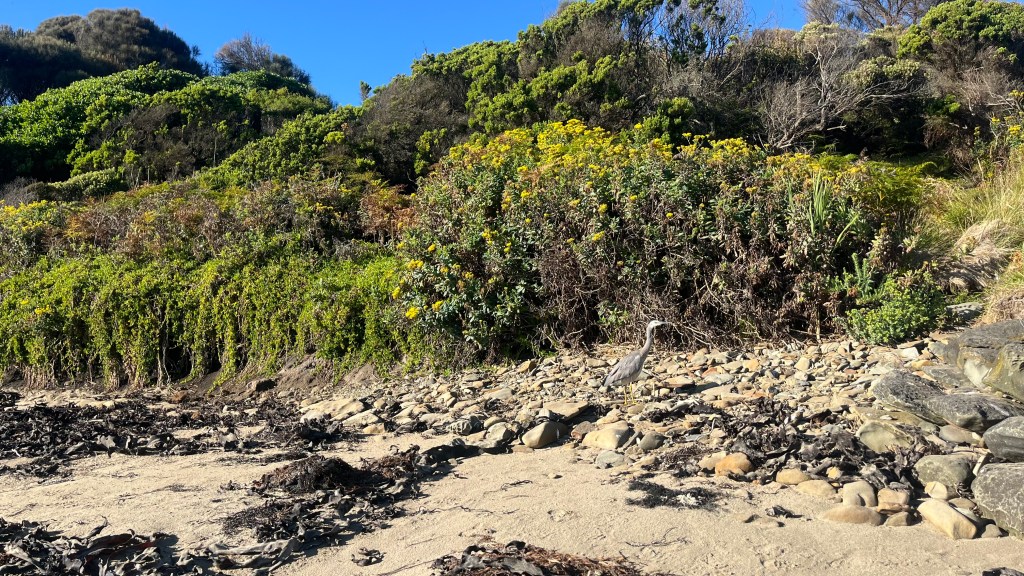 With little incentive to linger given breakfast requires utensils I don’t have, I wake early and pack quickly. The trail begins gently, skirting the beach where a heron pokes in the scrub, before it pulls me back onto cool, green forest. It smells unmistakably Australian, all eucalypt and sun-warmed earth, and I realise how much I’ve missed it while being overseas.