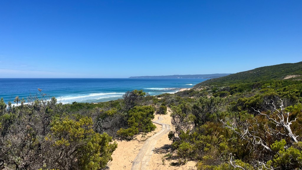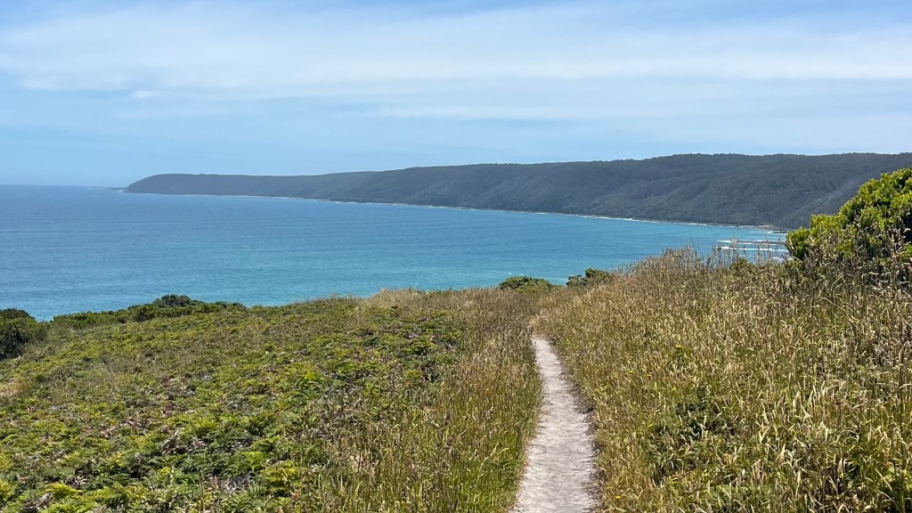 When I finally shoulder my pack, my jaw drops. This is a shakedown hike after acquiring a lot of new gear, and the gram counting has paid off; it’s so light! It’s a fantastic way to start the trail, and I set off under the midday sun and wide blue skies. I take my first beach alternate almost immediately, grateful to escape the road walking between Apollo Bay and Marengo.