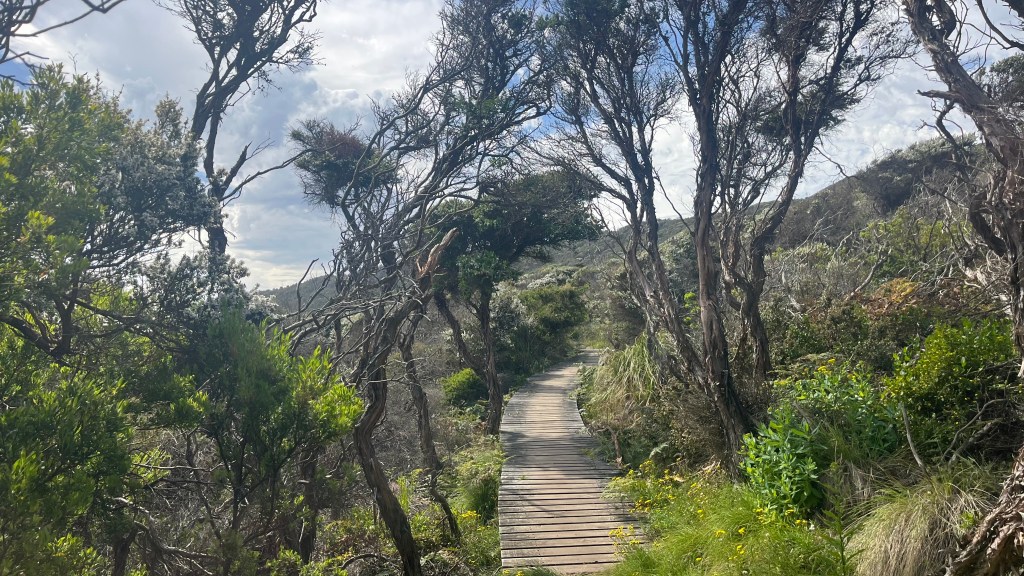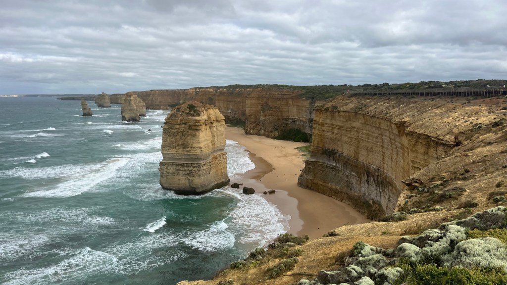 The final kilometres feel unnecessarily drawn out, wavering left and right as if designed to slow down day walkers rather than welcome tired thru-hikers to the end. All of a sudden, the visitor centre appears from behind a bend in the trail. The official end feels abrupt, anticlimactic. It would be unforgivable not to take the final walkway down to the Twelve Apostles lookout, so I do.